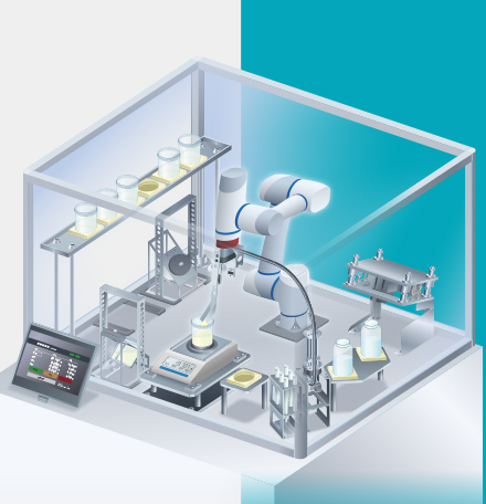 粉体、液体原料を1台のロボットで計量するシステムです。 粉体は、大小2種類のスコップで計量し、高精...
